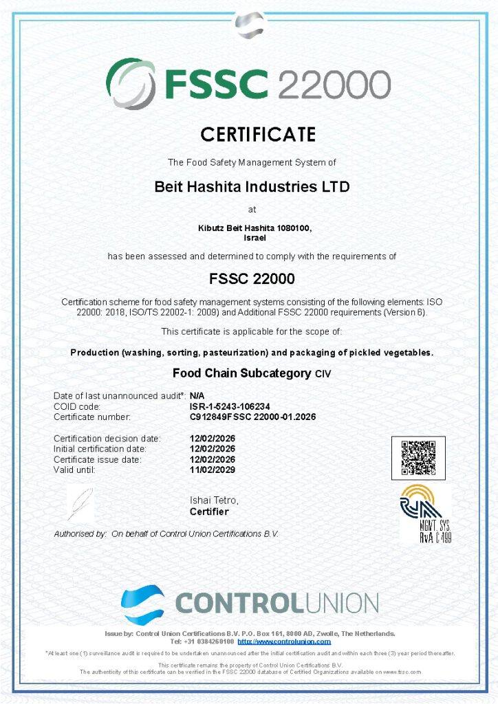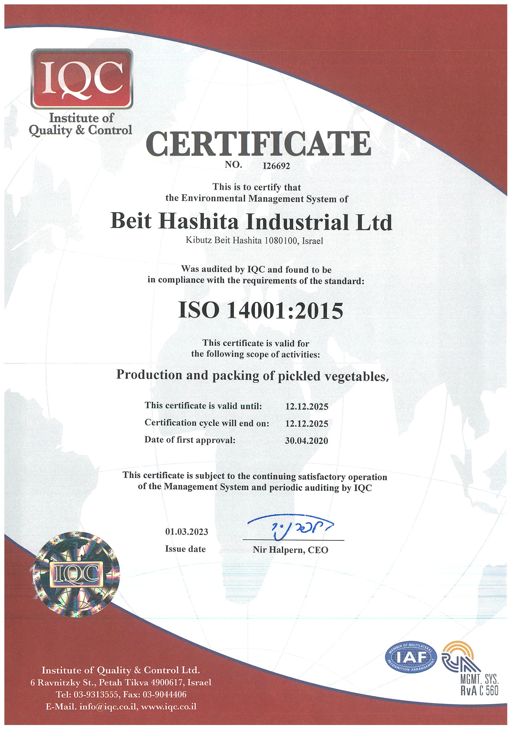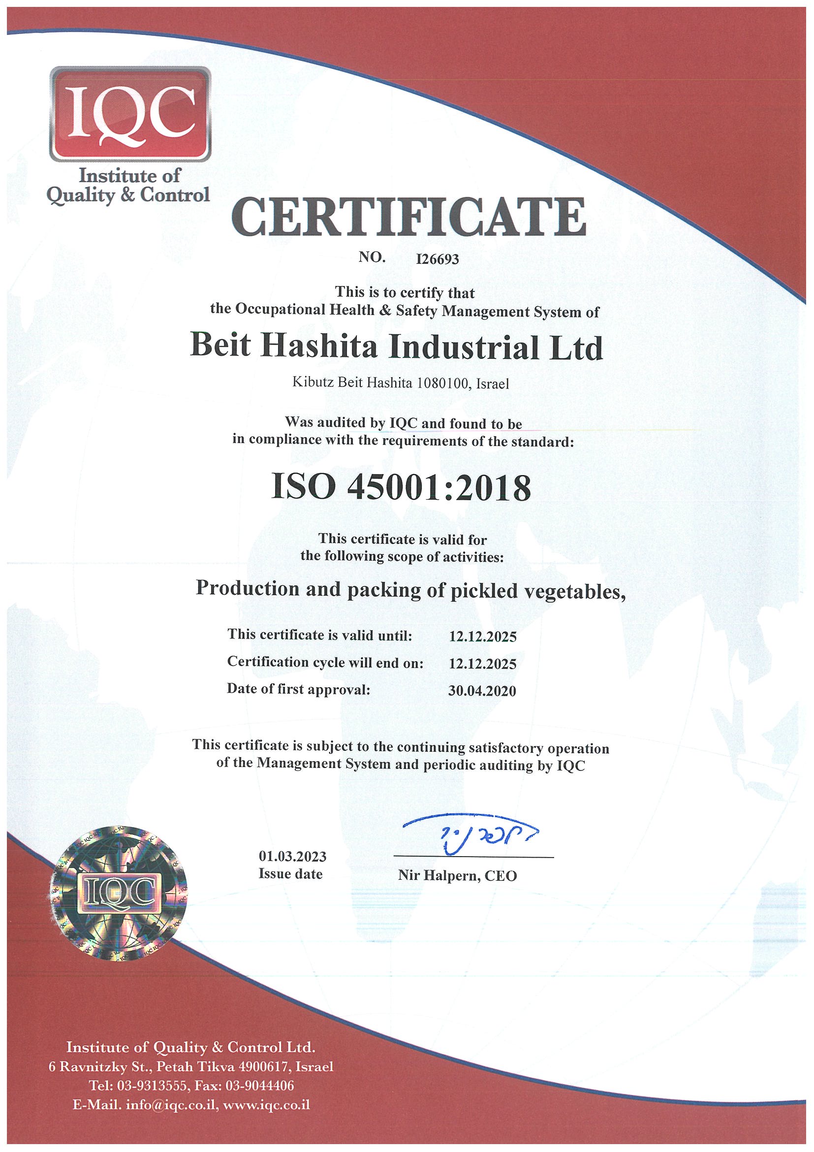 מדיניות האיכות של החברה הינה לפתח, לייצר ולשווק מוצרים בטוחים, המתאימים לתקנים לאומיים, לחוקים ולמפרטים העונים לדרישות ולשביעות רצונם המלאה של הלקוחות, תוך עמידה מלאה בחוקים ובתקנות הנוגעים לבטיחות המזון. ומתחייבת לעמוד בכל הדרישות הנגזרות מהחוקים, התקנות והצווים וכל דרישה חוקית הרלוונטית לפעילות החברה.
