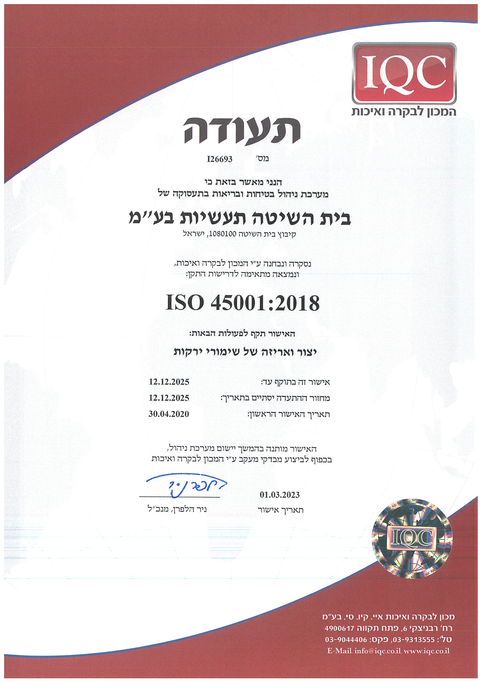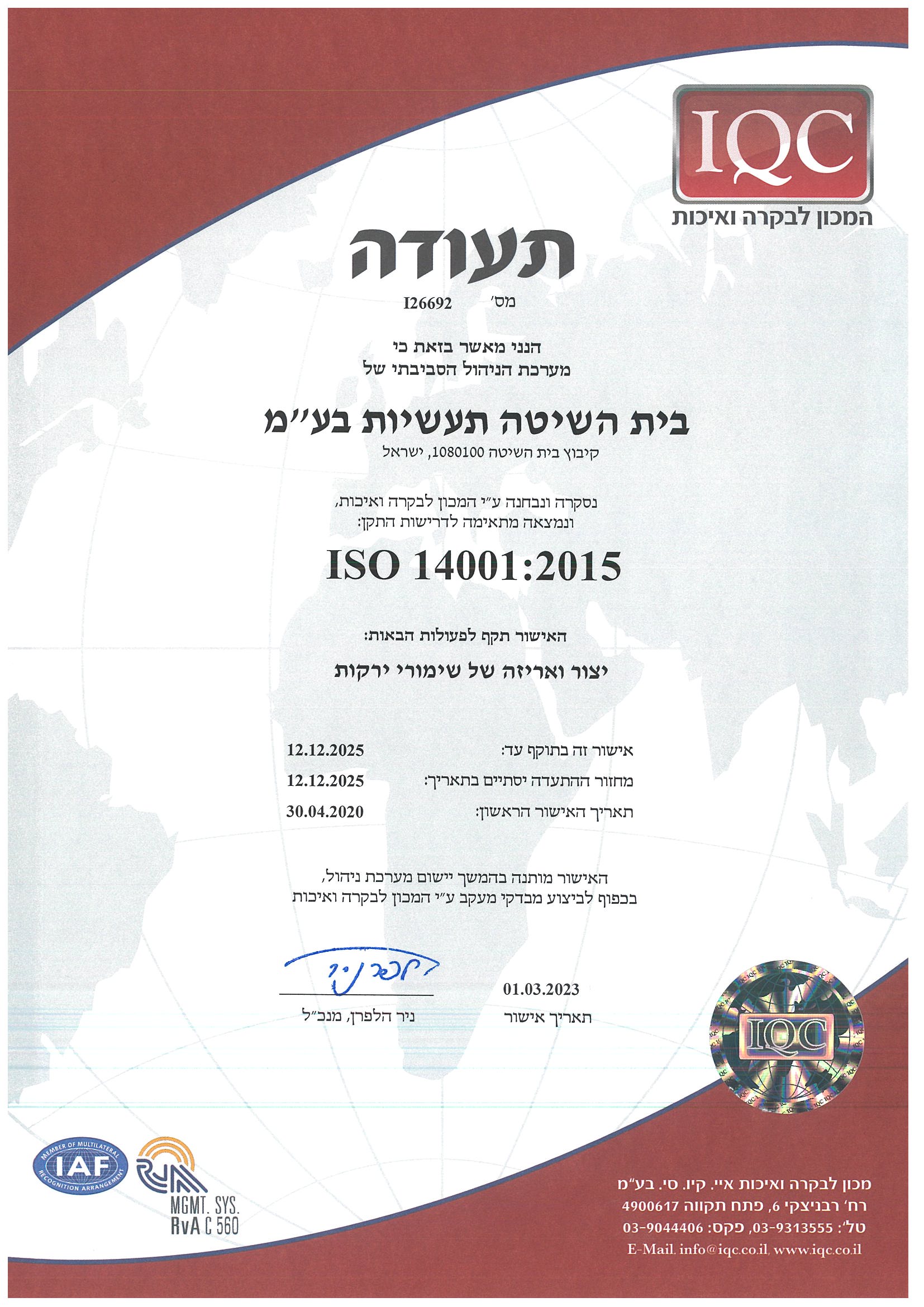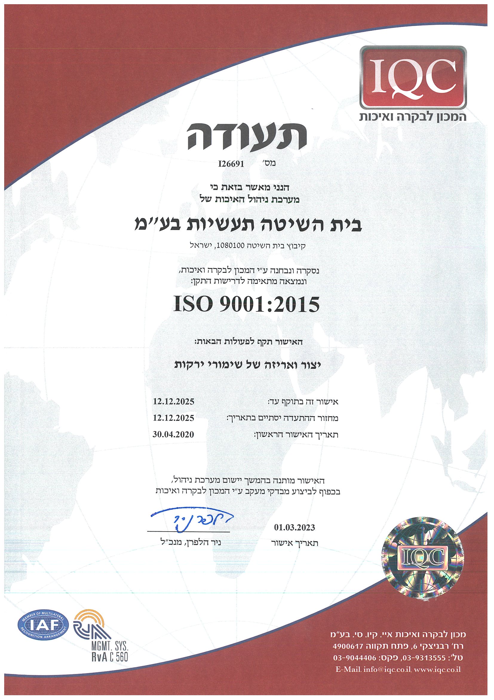 חברת בית השיטה תעשיות בע"מ רואה באיכות דרך חיים, ובשמירה על איכות ביצועיה, מוצריה ושביעות רצון לקוחותיה את המפתח להצלחתה בהווה ובעתיד.